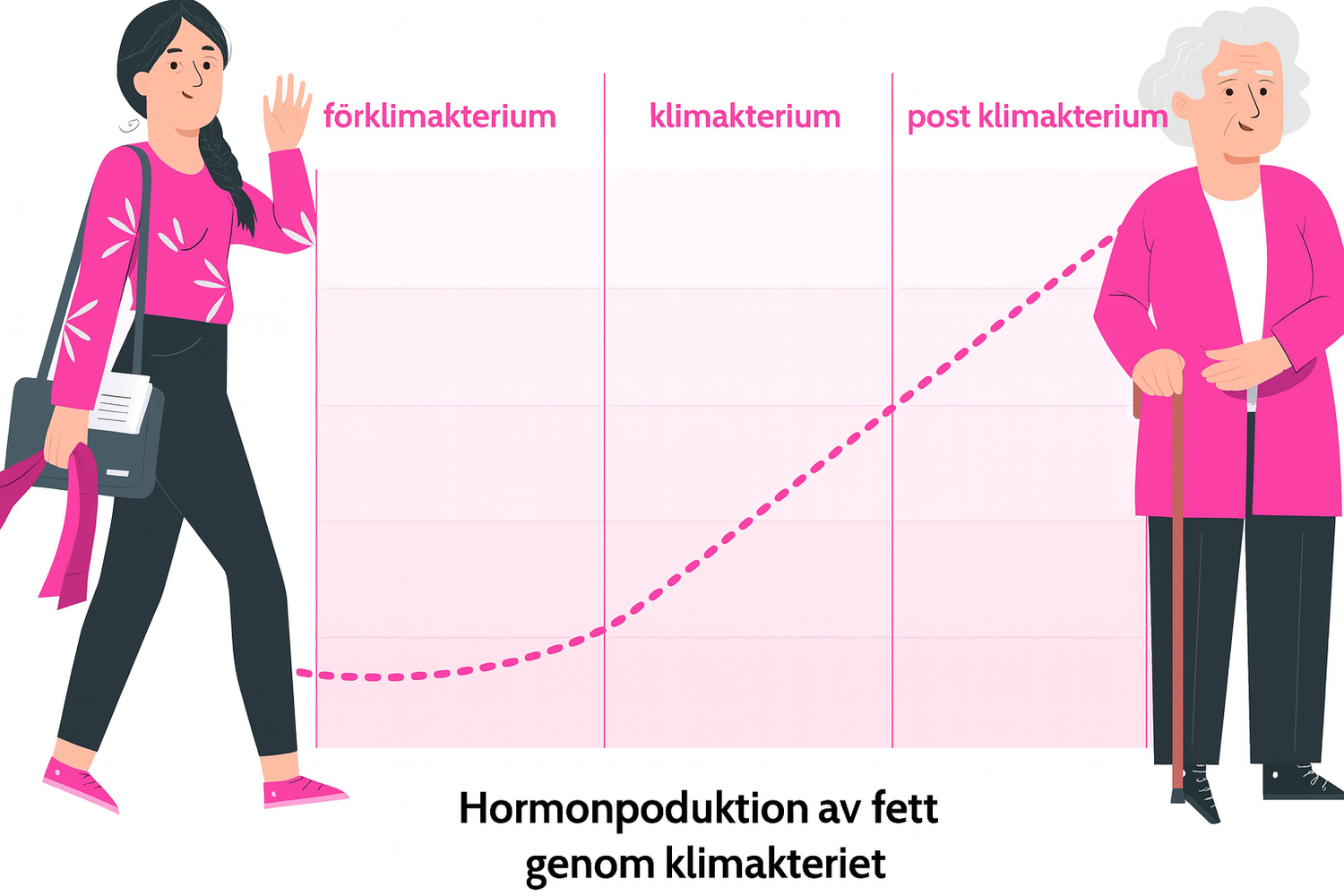 Under klimakteriet ökar den hormonella fettproduktionen…